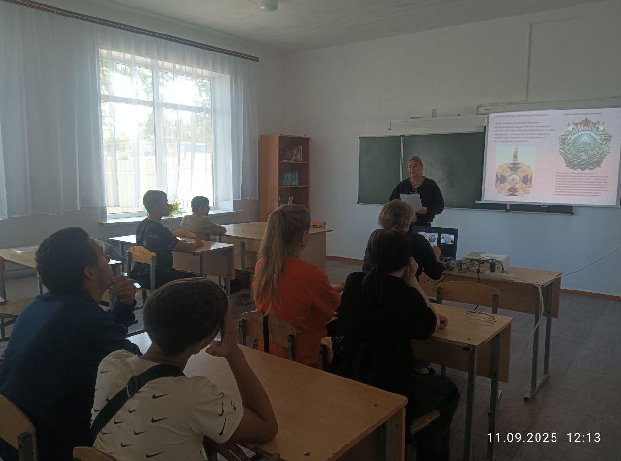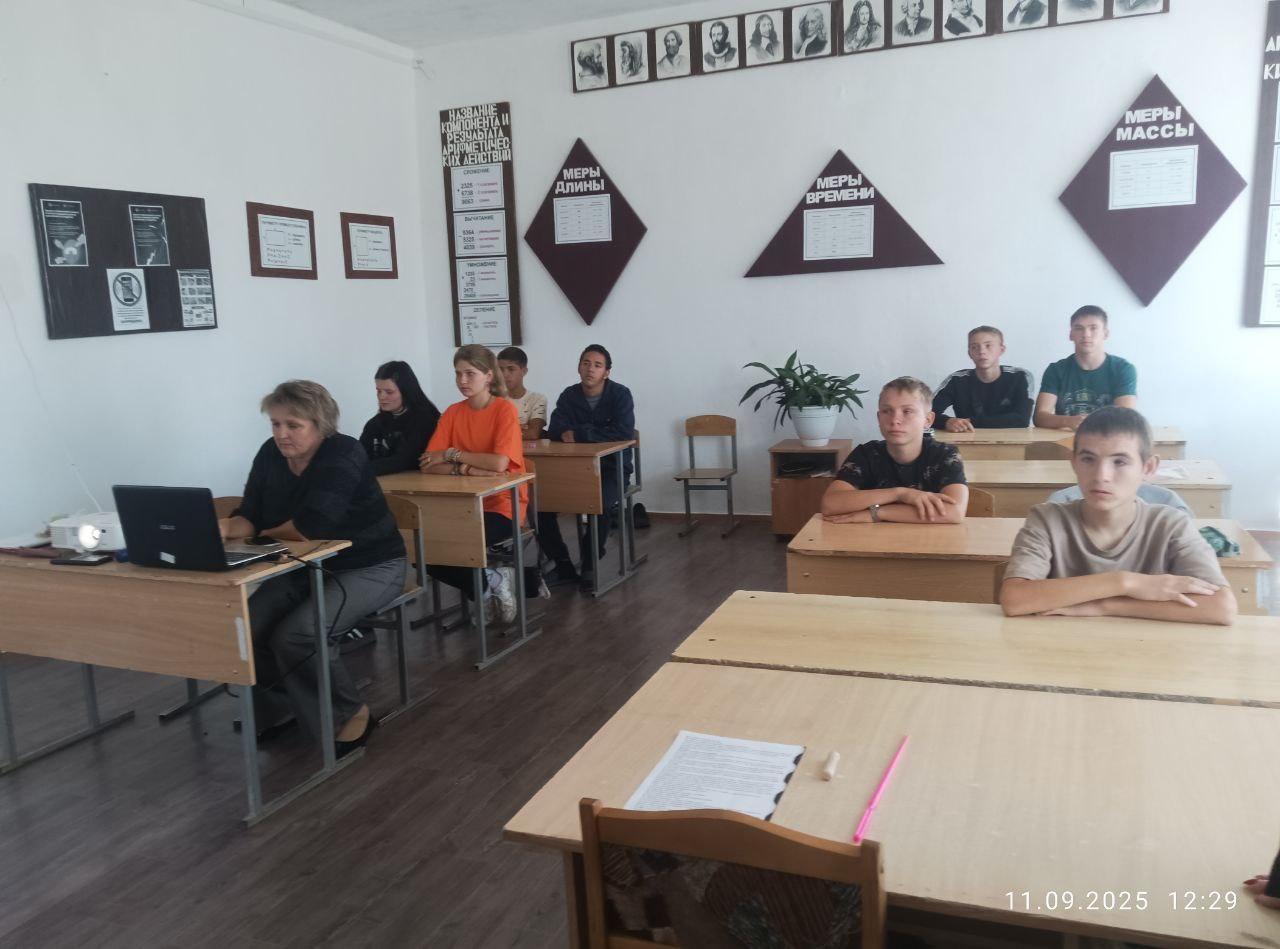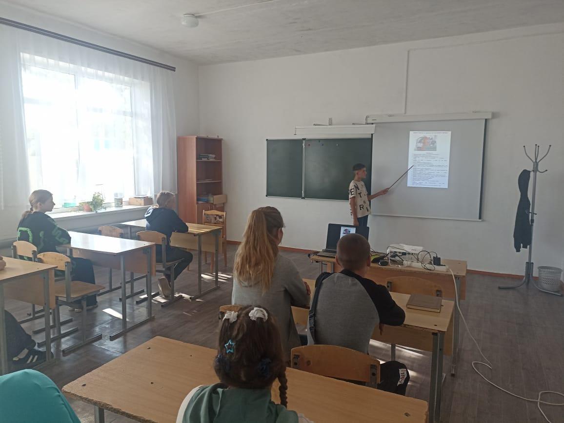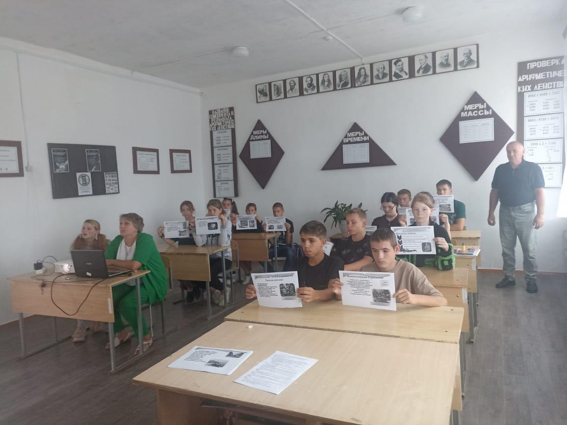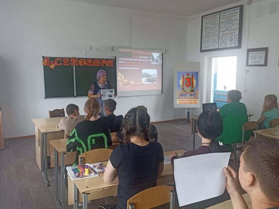 Сегодня советник директора по воспитанию Г.Е.Кублицкая и классный руководитель 9 класса О.Г.Дружкова провели урок мужества, посвящённый двум значимым датам: 80-летию окончания Второй мировой войны и Дню солидарности в борьбе с терроризмом.